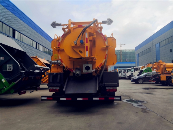 清洗部分:3方水箱,采用4mmQ235優(yōu)質(zhì)碳鋼板,水箱兩側(cè)消防接口進(jìn)水,工具箱一個(gè)。采用德國(guó)品浮高壓泵215升流量,22兆帕,配60米內(nèi)徑19#高壓管,10個(gè)大小不同噴頭一套, 后置式清洗卷盤(pán),帶淋管裝置(用于淋洗高壓管疏通管道過(guò)后上面殘留的污物),帶氣吹水功能(用于吹出每次高壓管工作完以后內(nèi)部殘留的水漬,防止天冷結(jié)冰影響下次使用)